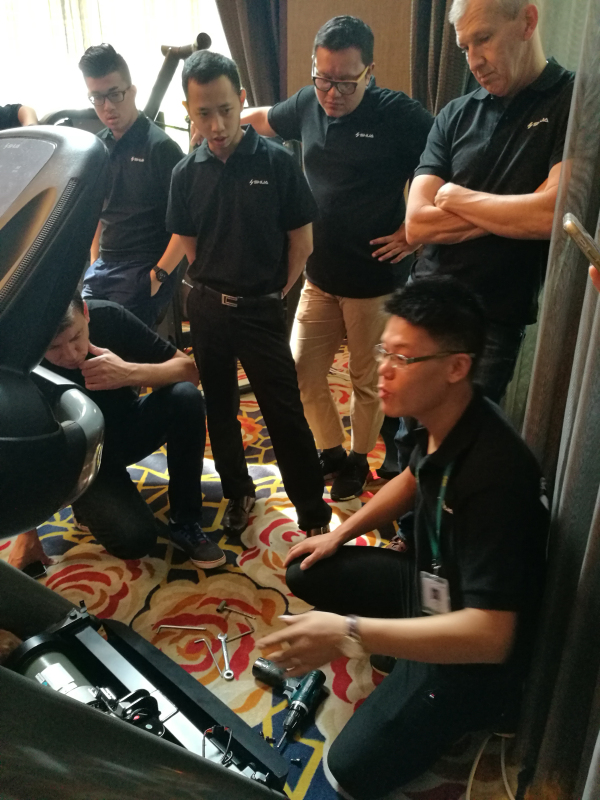 會(huì)上,張治國(guó)副總裁首先代表公司對(duì)參會(huì)客戶(hù)表示熱烈歡迎,并對(duì)舒華整體情況進(jìn)行介紹。此外,高曉松副總經(jīng)理針對(duì)舒華海外市場(chǎng)和代理商發(fā)展情況,為大家進(jìn)行了深入剖析和講解。接下來(lái)的議程中,除了參觀(guān)舒華總部和臺(tái)商兩大生產(chǎn)基地,對(duì)售后故障的排除以及實(shí)操演練是本次培訓(xùn)活動(dòng)的主要亮點(diǎn)。舒華售后工程師專(zhuān)業(yè)、熟練的技能和熱情的講解給國(guó)際客戶(hù)留下深刻印象,生動(dòng)詮釋了“服務(wù)創(chuàng)造價(jià)值”的主題內(nèi)涵。會(huì)后,舒華同事帶領(lǐng)客人游覽泉州名勝古跡并在傍晚組織了篝火晚會(huì),熱情洋溢的K歌比賽將晚會(huì)的氣氛推向高潮。