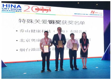 經過前期嚴格的初評及開展首日的現場評審,喬山的3款產品從眾多入選企業的參選產品中成功突圍,獲得了“中國國際體育用品博覽會特殊人群健身器材評選活動”頒發的“特殊關愛銅獎”企業的殊榮。